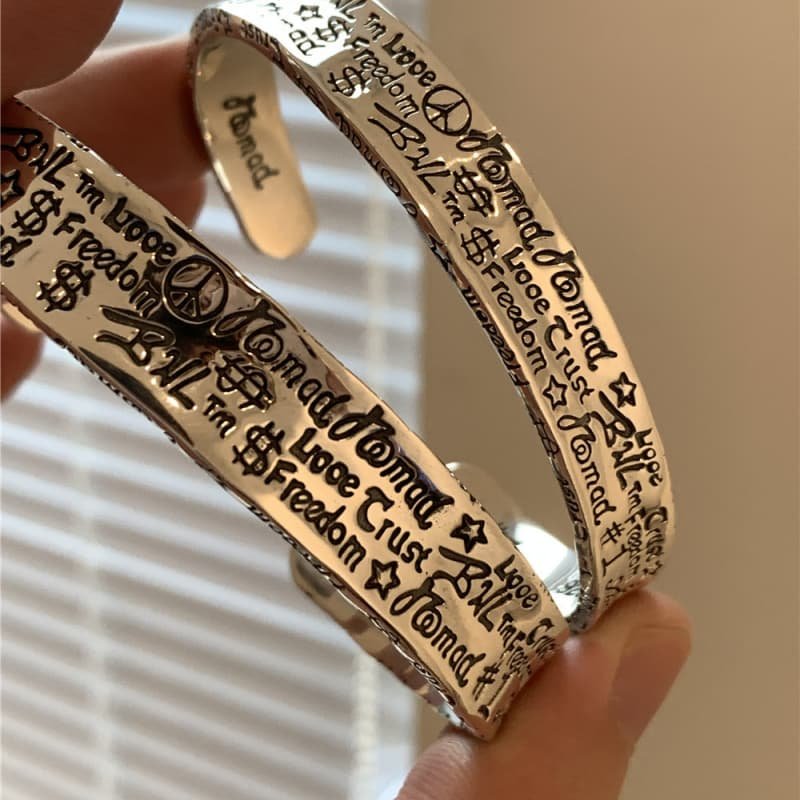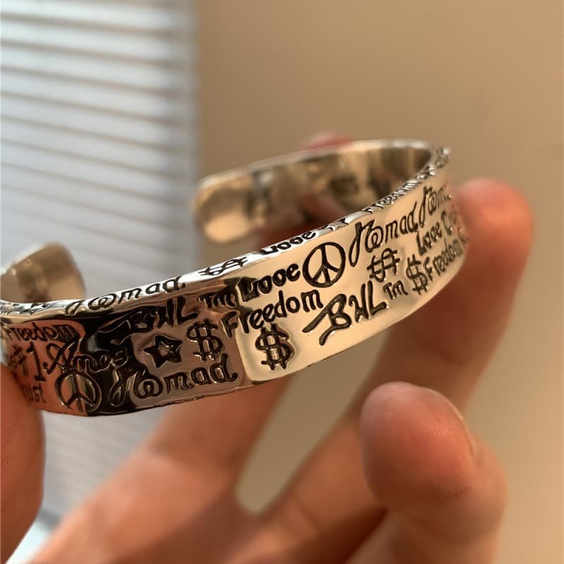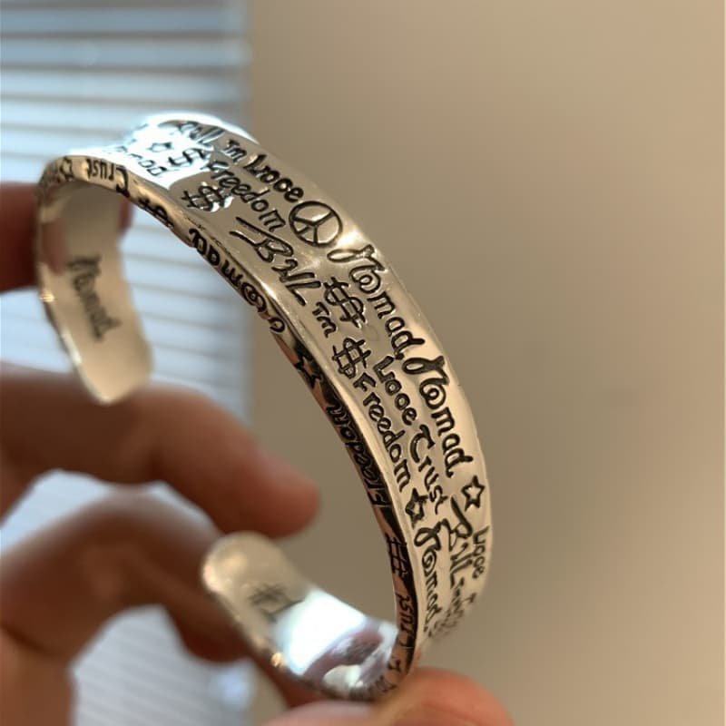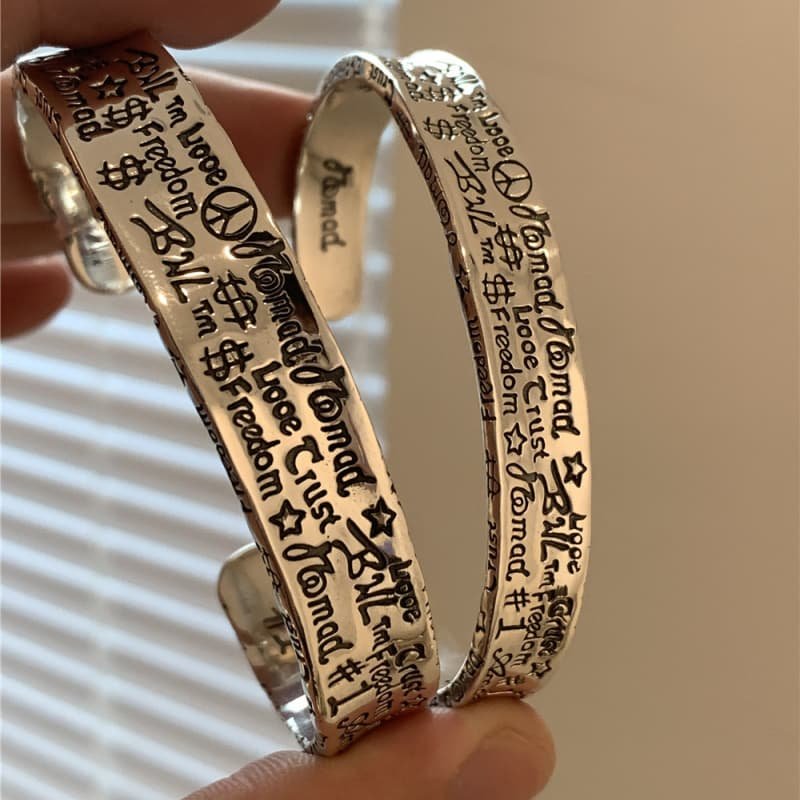 Pure silver couple graffiti high-end bracelet, female Instagram niche design, light luxury retro exquisite cold style