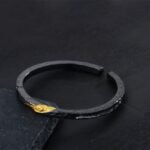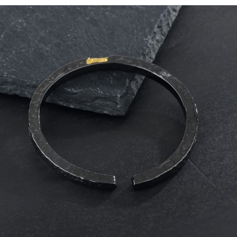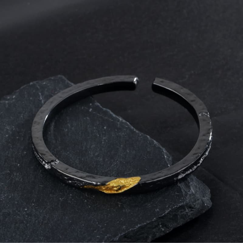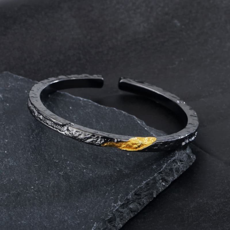 New Men’s Trendy Personality Cool Style Simple Open Bracelet with Gold Texture Black Flowing Fire Bracelet