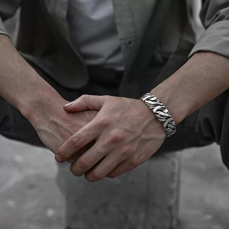2025 new retro niche open mouth bracelet men’s wide bracelet Thai hand woven bracelet